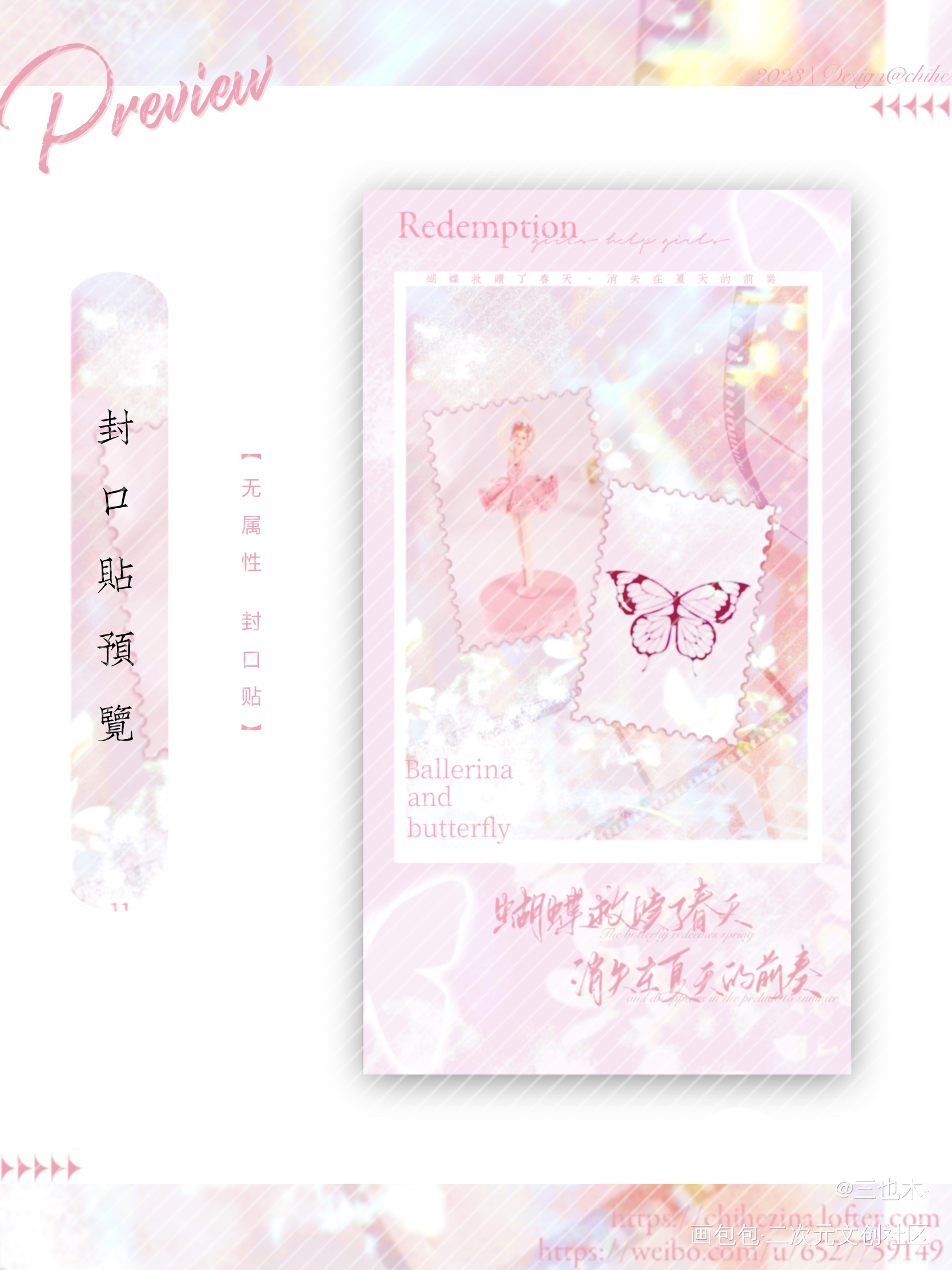 主题:Redemption <救赎> 副标题:girls help girls 灵感来自女子推理社: 蝴蝶救赎了春天,消失在夏天的前奏 芭蕾舞女孩和蝴蝶的故事 ps: 想要实物的宝可以蹲蹲 之后会进行shòu//mài(有10款原创的封口贴)