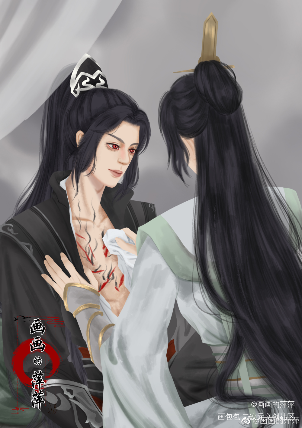沈清秋趁机把他衣服“嗤啦”一下撕开。看了两眼,有点无从下手,只敢用软巾在一片血污之中轻轻点拭。 翻卷的皮肉溢出丝丝黑气,不像是普通的伤口,否则依洛冰河的自愈能力,早就恢复如初了。沈清秋边小心翼翼给他清理,边说:“这几天你究竟跑哪儿去了,跟谁打打成这样的?”