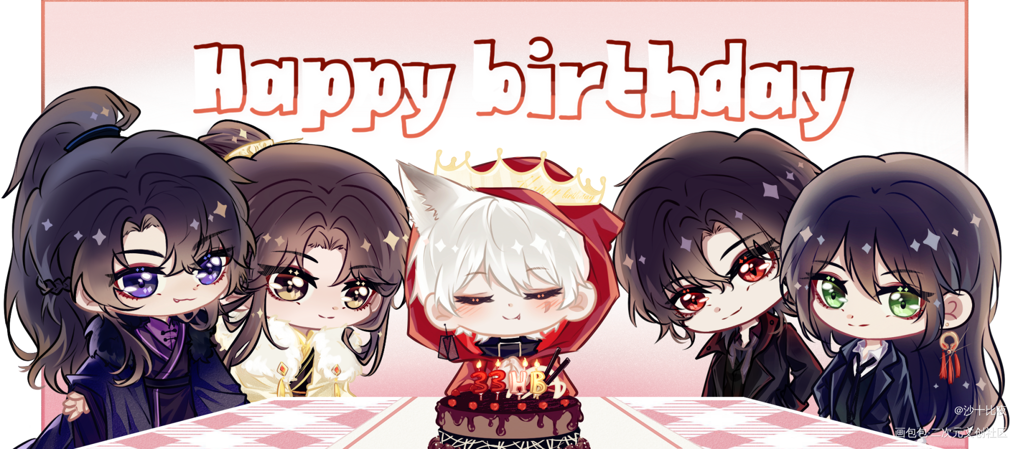 祝我喜欢的晋江作者望三山生日快乐 画了三三家《我靠美颜稳住天下》和《这该死的求生欲》两对主CP宝宝陪他们的妈妈过生日ovo