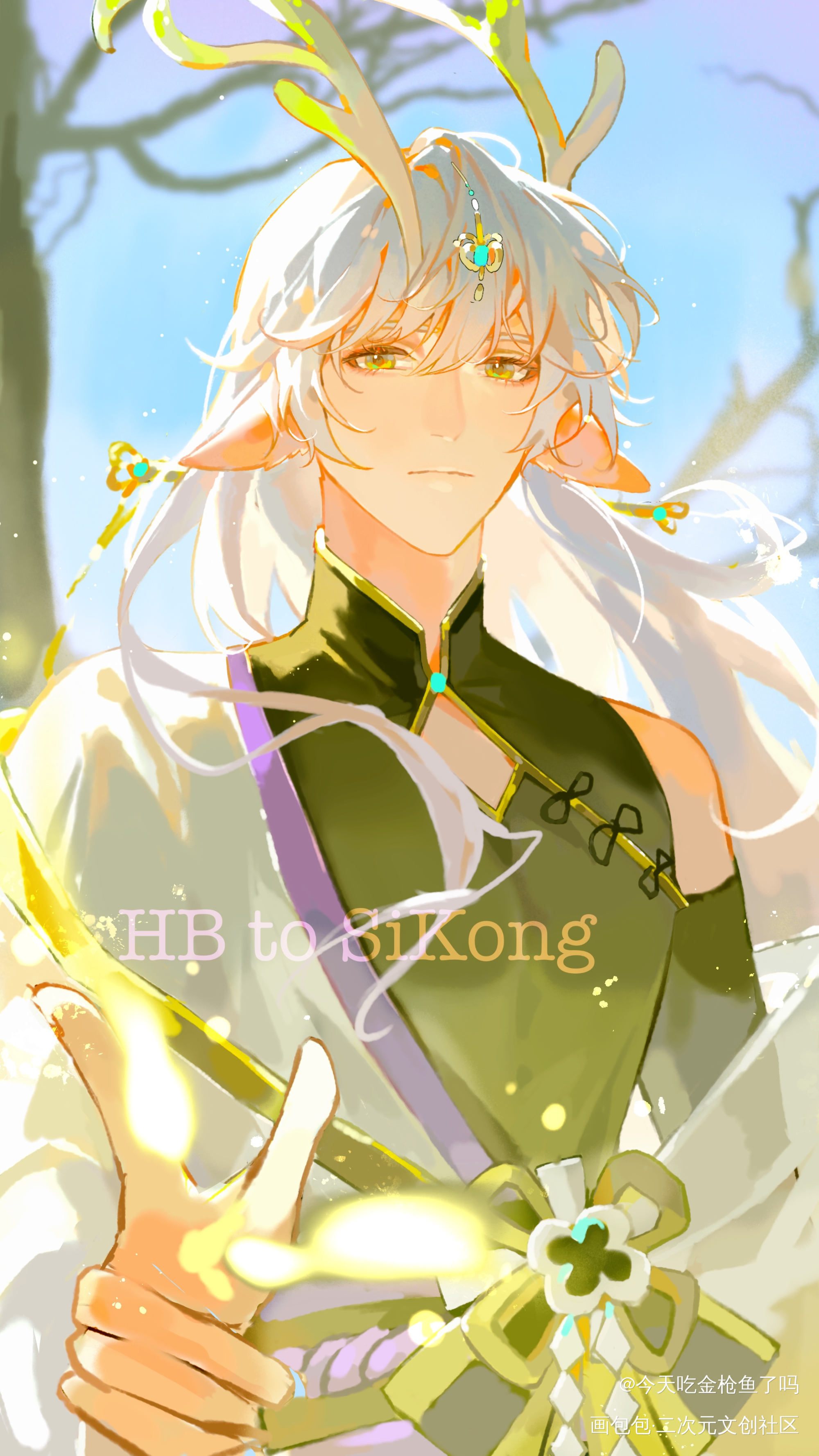 是给亲友的生贺!!!画了她的oc漂亮小鹿!设定是执掌草木生灵的东方神,原型是一头白鹿!