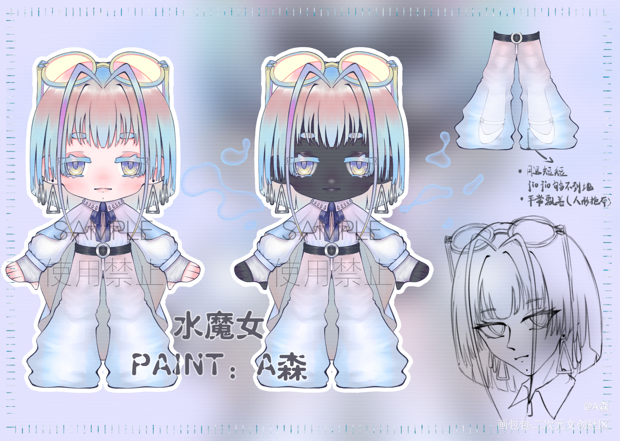 “作为不老的魔女,成熟感是必要的——” 看上去酷酷的水魔女,有着十分可爱的身高和小短腿,为了让自己看上去成熟些,平时会穿着长长的长裤,飘着走让自己看着更高一些