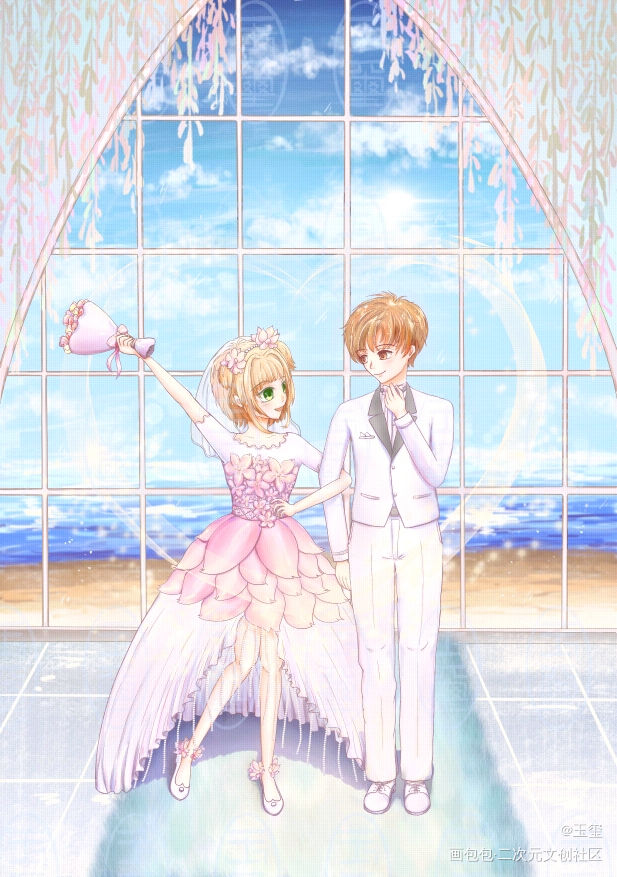 魔卡少女樱同人插图-樱狼海边教堂婚贺图