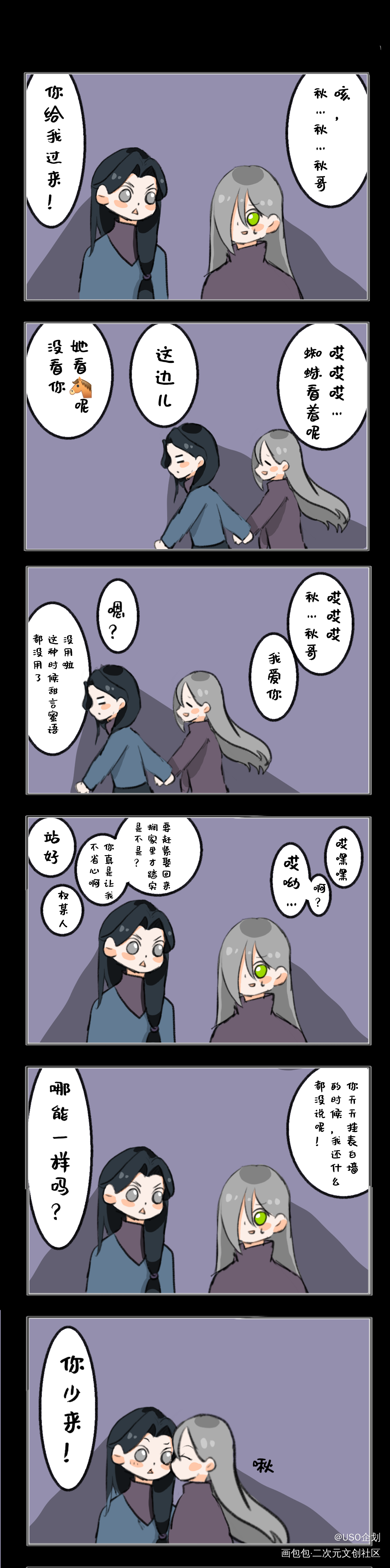 【oc借梗】果然!哄男朋友开心最好的方法就是亲亲! 梗概来源:《撒野》论吃醋的最高段位是!!(蒋丞你直接念我名字得了!!) 人设:权–顾飞,秋–蒋丞