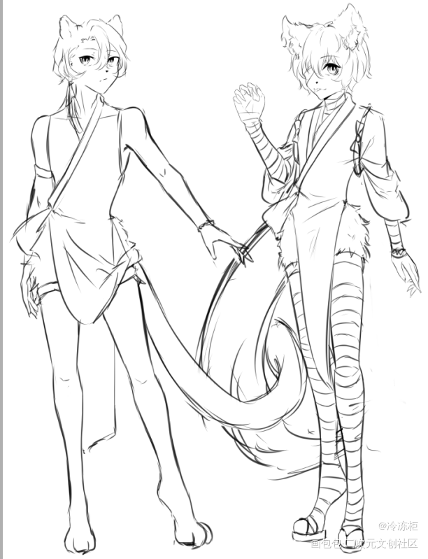 搞点毛绒绒 形象借鉴舟的槐琥和阿以及剑灵的灵族。 是老虎和猫。
