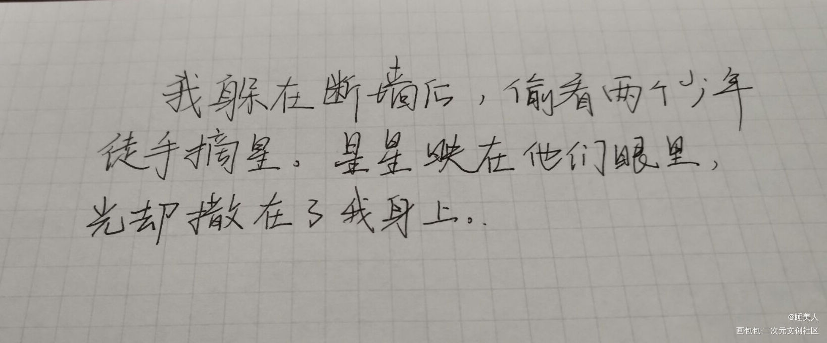 我躲在断墙后,偷看两个少年徒手摘星。星星映在他们眼里,光却撒在了我身上。