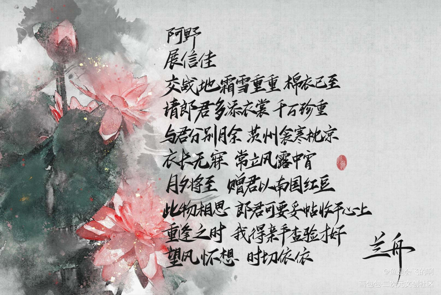 出处:将进酒广播剧第三季中秋小剧场(相思) 格式没有严格按书信来写 被刀了就来点甜甜的吧 策舟长长久久❤️ orz(写的不好,之后会努力练习的)