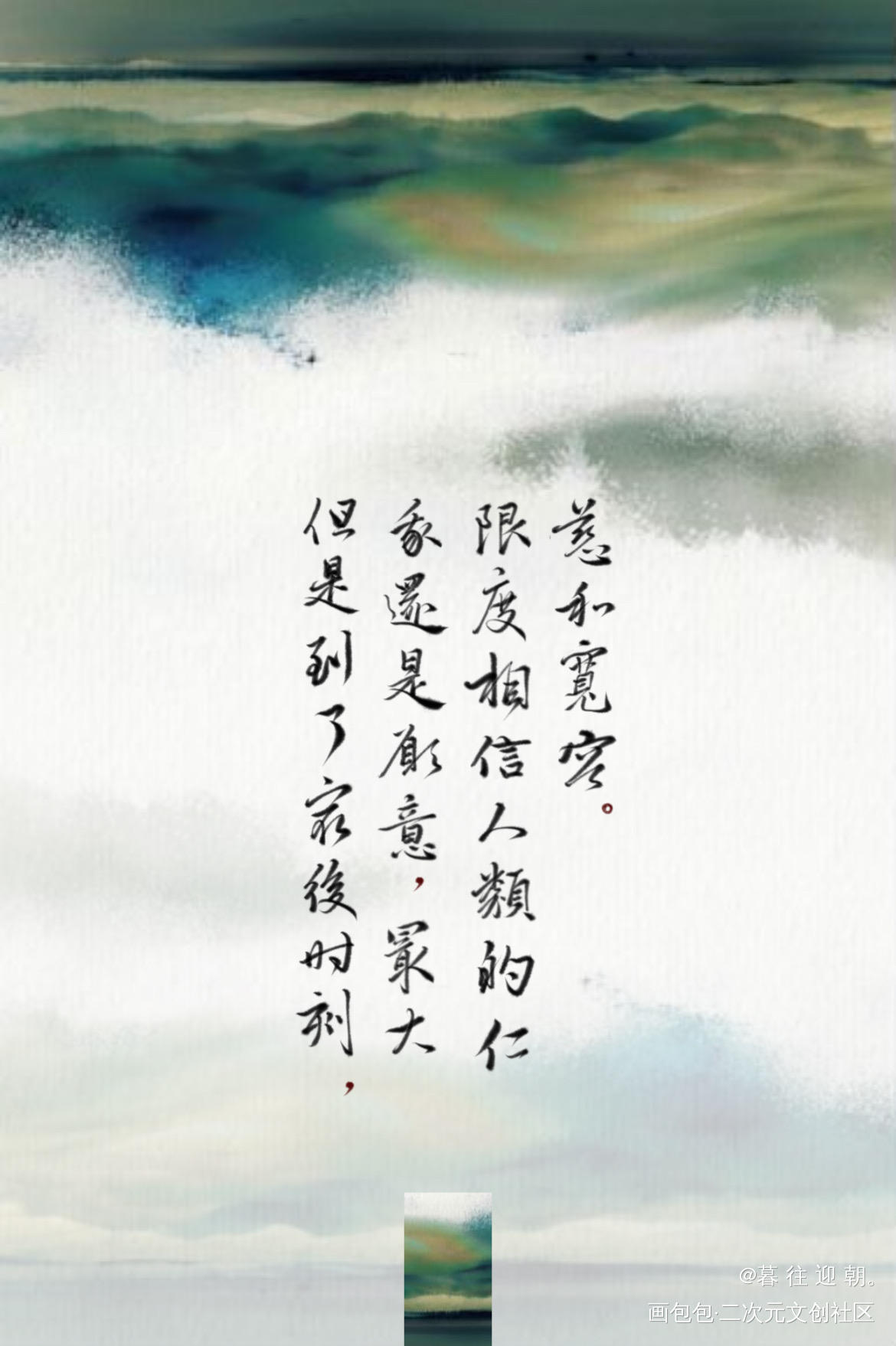 “但是到了最后时刻,我还是愿意,最大限度相信人类的仁慈和宽容。” ——一十四洲《小蘑菇》 底图:穿云 笔刷:芽