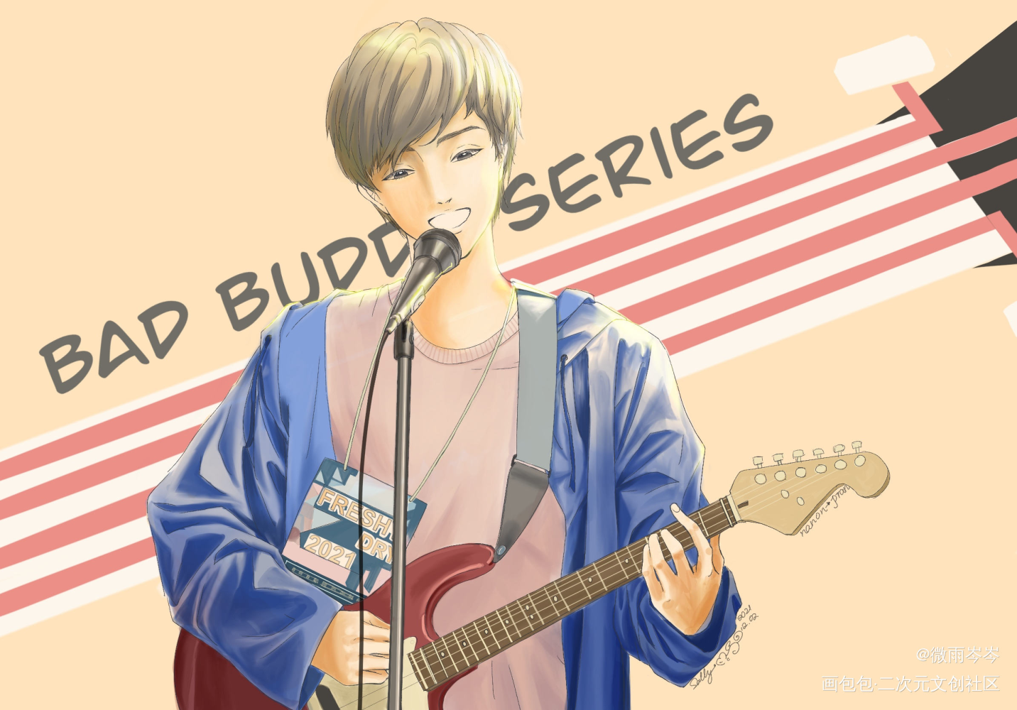 太喜欢两小了!最近画了一幅模仿画,参考剧中nanon唱歌的那张图!