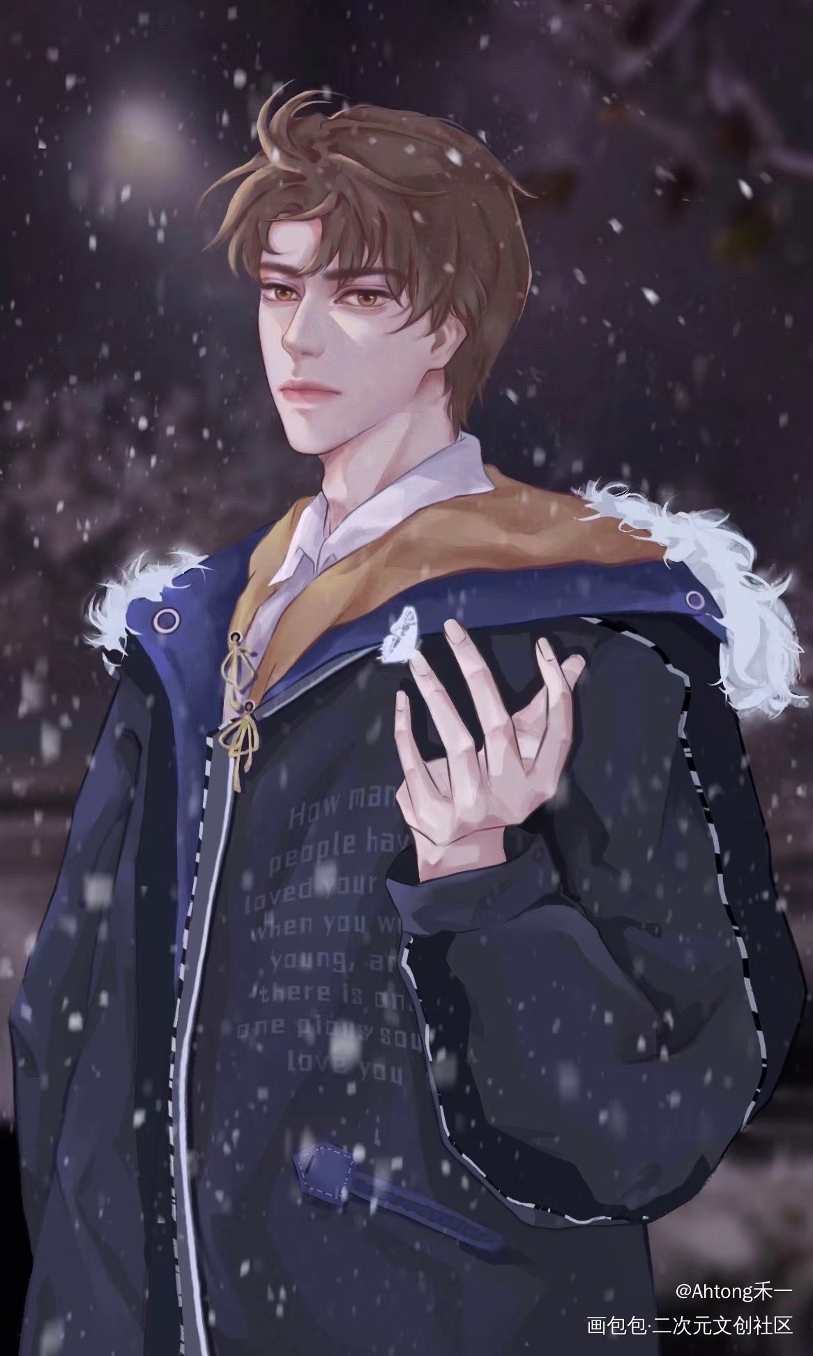 How many people have loved your face when you were young, and there is only one pious soul I love you多少人曾爱慕你年轻时的容颜,只有一个我爱你虔诚的灵魂 (翔哥衣服上的字)