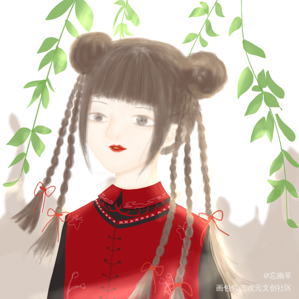 扎辫子丸子头少女