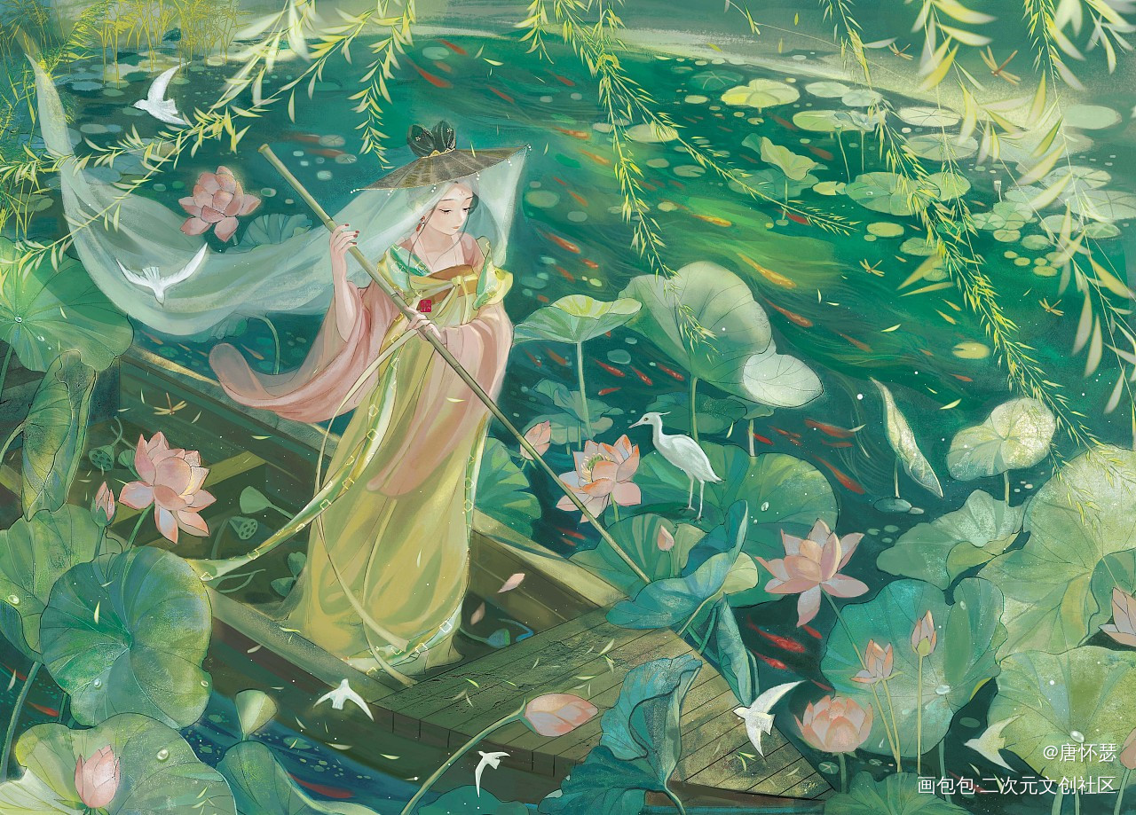 虽然主题是春山如笑但其实一开始定的春夏,所以画了荷花~