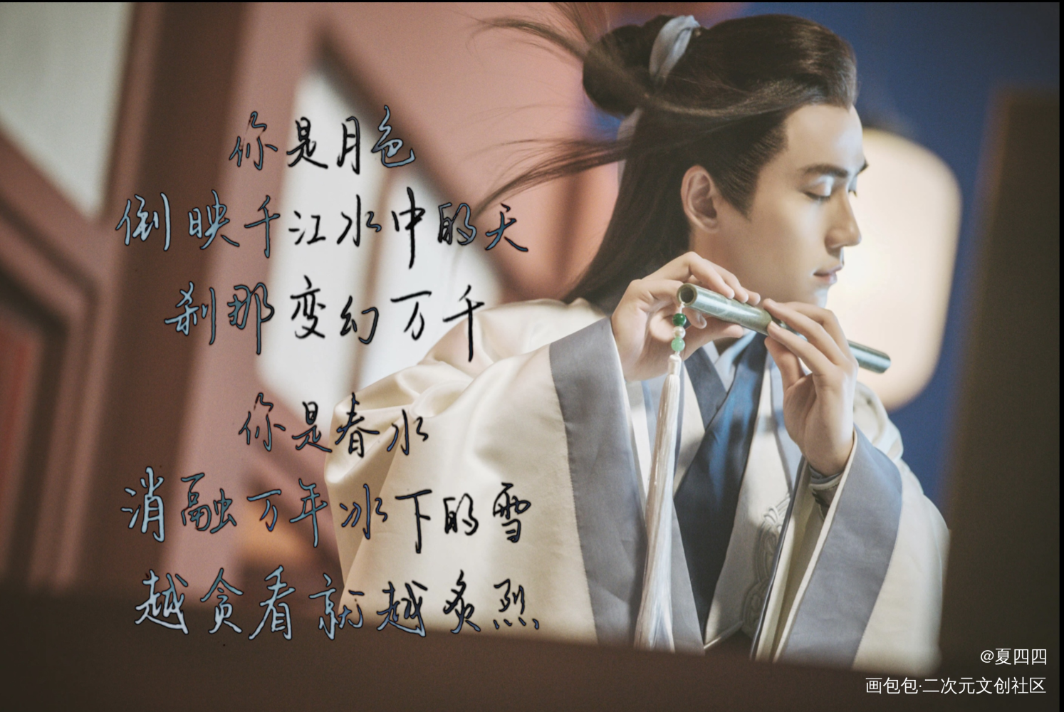 你是月色,倒映千江水中的天,刹那变幻万千; 你是春水,消融万年冰下的雪,越贪看就越炙烈。 ——歌曲《【辉夜】-朱一龙古装群像曲》 朱一龙先生0416生日快乐! (调了很久也没调好orz)