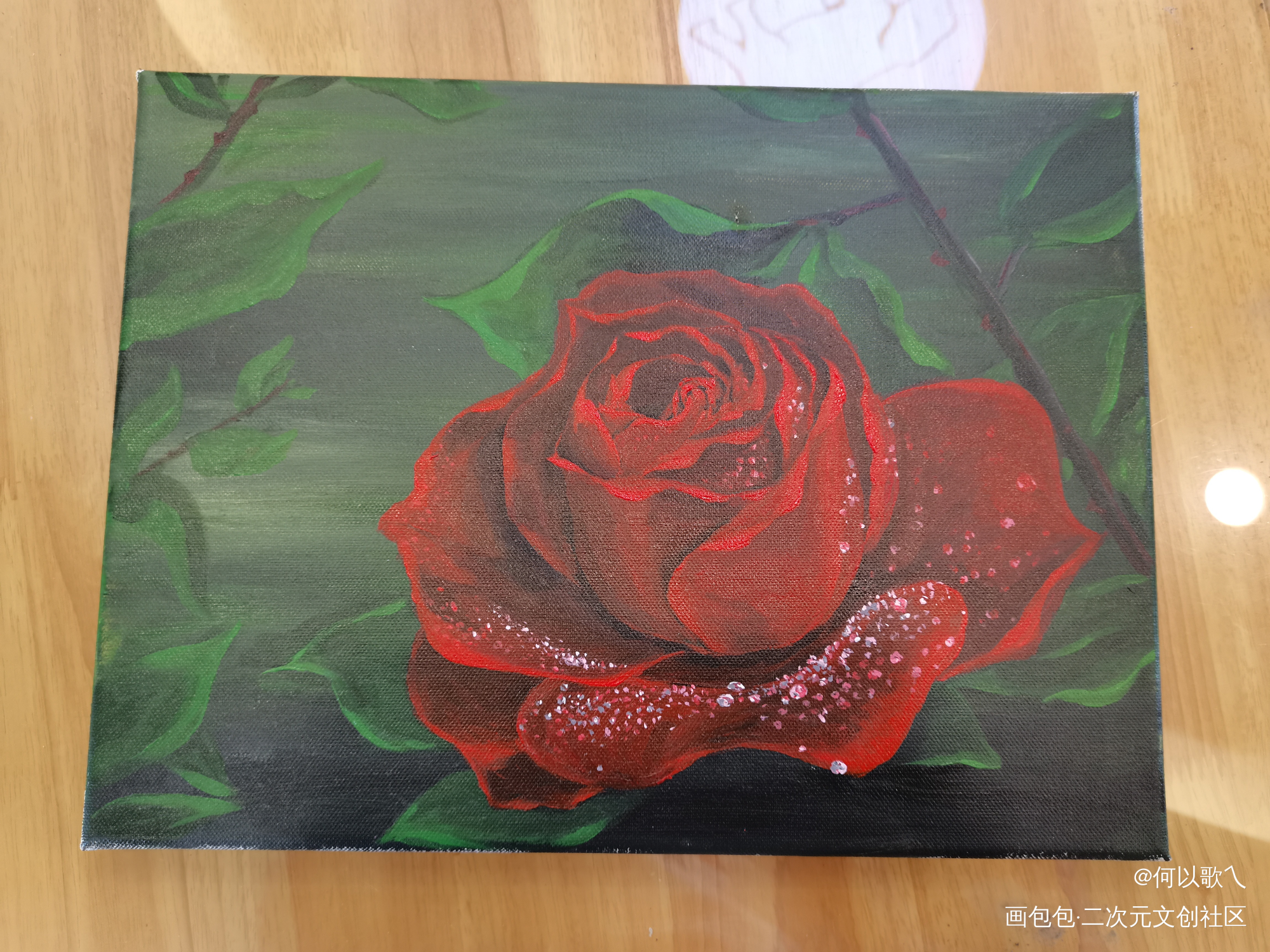 之前的彩铅摸鱼结束了,请教了老师跟着学油画 当然请老师润笔了的 远看的效果应该更好,水珠是真的逼真❤️