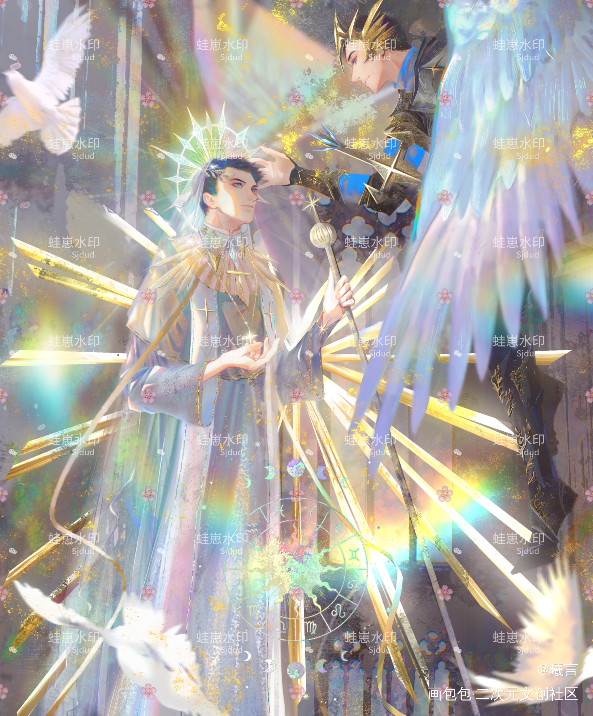 钏钏老婆画的!真的太喜欢这张了!(就买下来了😌蛙真的好喜欢这种西方神明的画风!终于遇见了钏钏老婆❤️)