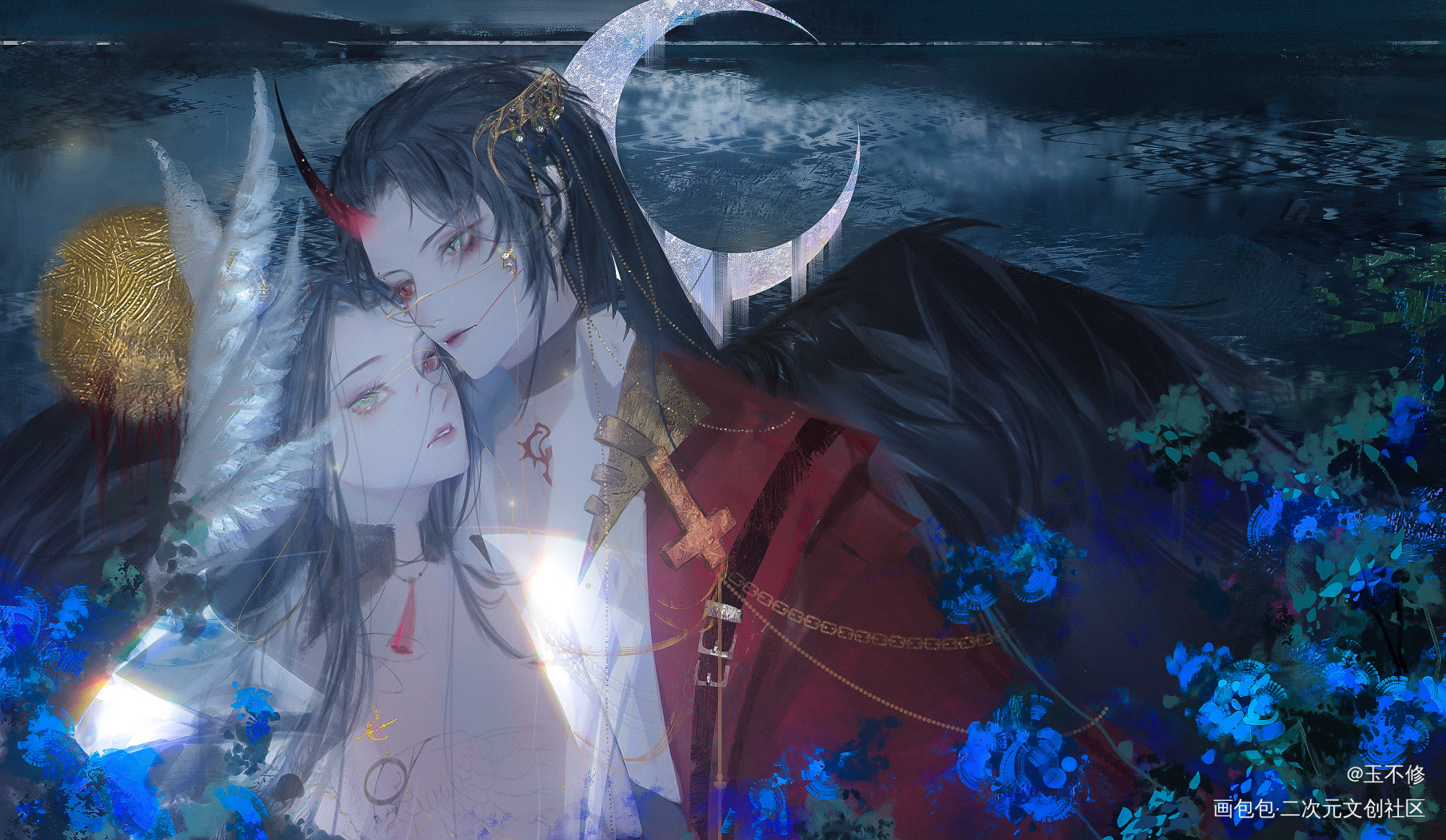 是以前画的设子。 一对罪孽的骨科双生子,一母同胞,一个天生向暗,一个天生向光。互相爱慕又互相厌恶,彼此保护彼此伤害。 '一段彼此纠葛的痛苦推拒和背叛,最终兄长杀死了作为圣子的弟弟,抽取对方的脊骨,将彼此的灵魂永远囚禁束缚'